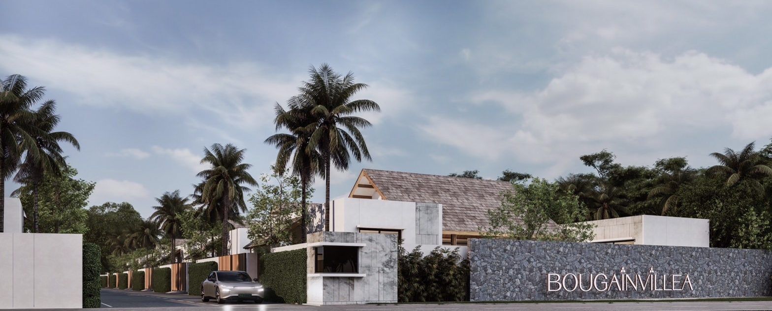 Bougainvillea Villas is a new luxury 3‑bedroom pool villa development near Bangtao Beach in western Phuket, slated for completion in Q4 2026. The project offers freehold and leasehold options on land plots ranging from 450 sqm to 594 sqm, with villas featuring volcanic‑tile pools, large glass doors, and comprehensive security amenities, and is close to golf courses, shopping hubs and an international school.