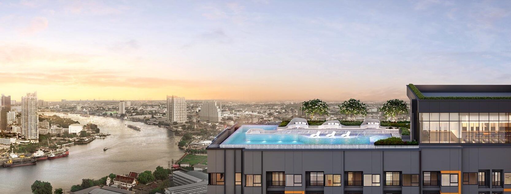 Flexi Riverview - Charoennakorn is a 33‑storey residential tower in Thon Buri, Bangkok, offering 700 units of various layouts with extensive amenities such as a sky garden, fitness centre, swimming pools and co‑working spaces. It features river views, modern smart‑home fixtures, freehold ownership for Thai and foreign buyers, and is located near the Chao Phraya River, BTS Skytrain stations, Iconsiam and other key attractions.